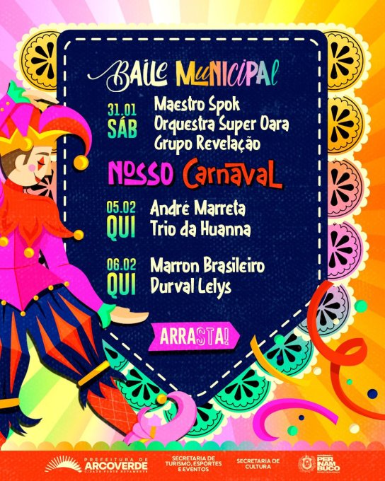Além das atrações nacionais, artistas arcoverdenses também integrarão a programação, com divulgação prevista para os próximos dias.