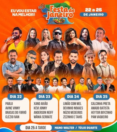 Prefeitura de Orocó divulga atrações da Festa de Janeiro 2026; veja programação completa